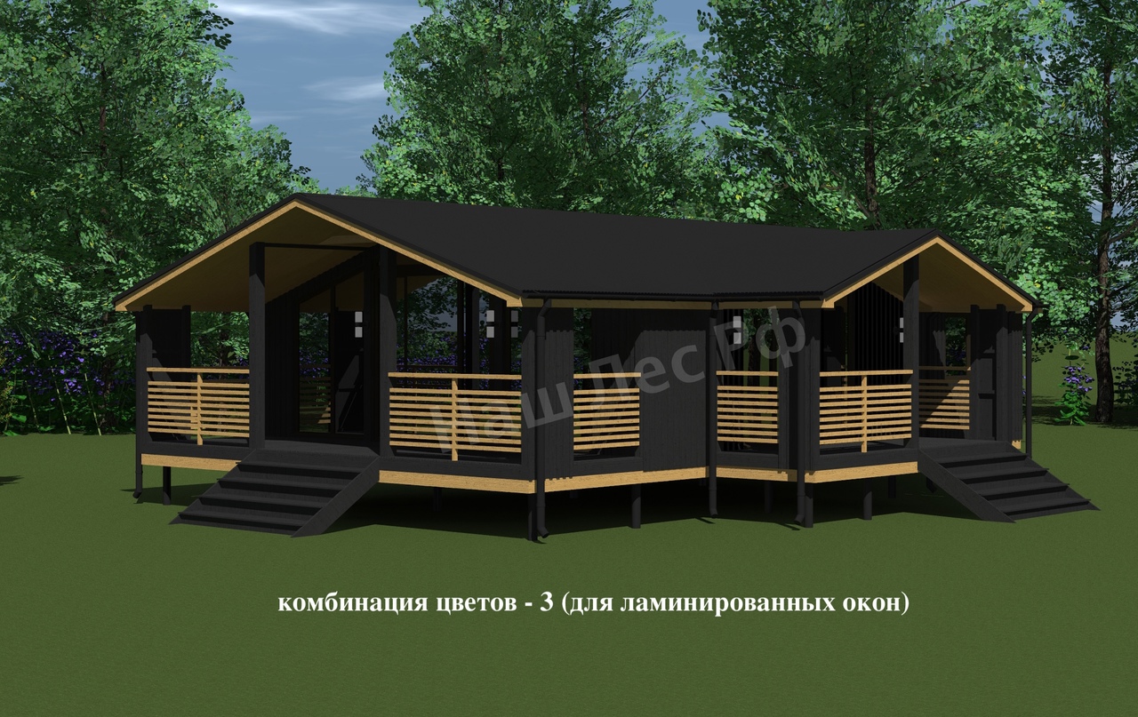 • Каркас – древесина хвойных пород транспортной влажности. Лаги пола сухая строганая доска 45х195. Обработка каркаса антисептиком.