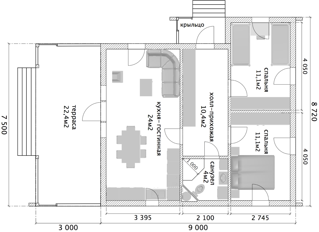 • Монтаж дома на участке, запуск дома в эксплуатацию (при наличии наружных сетей)